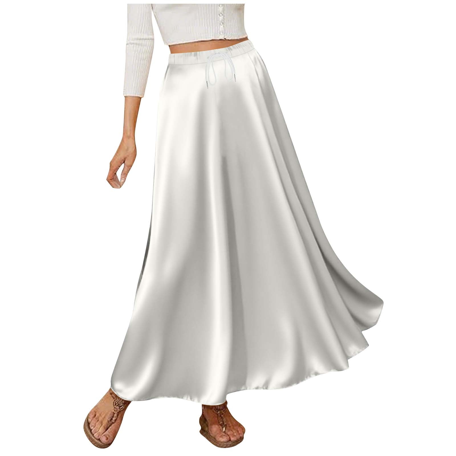 Womens Flowy Satin Skirt Business Casual High Waisted Cocktail Wedding
