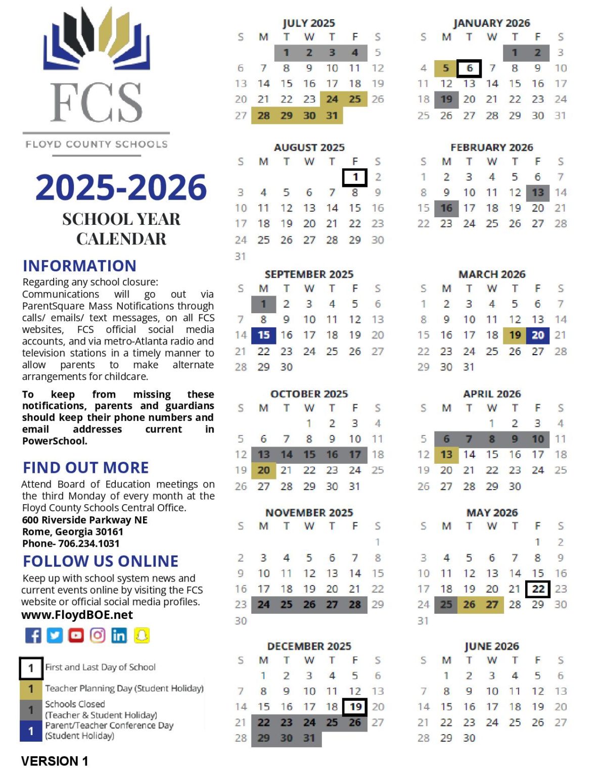 2025 2026 Floyd County Schools Calendar Floyd County Schools