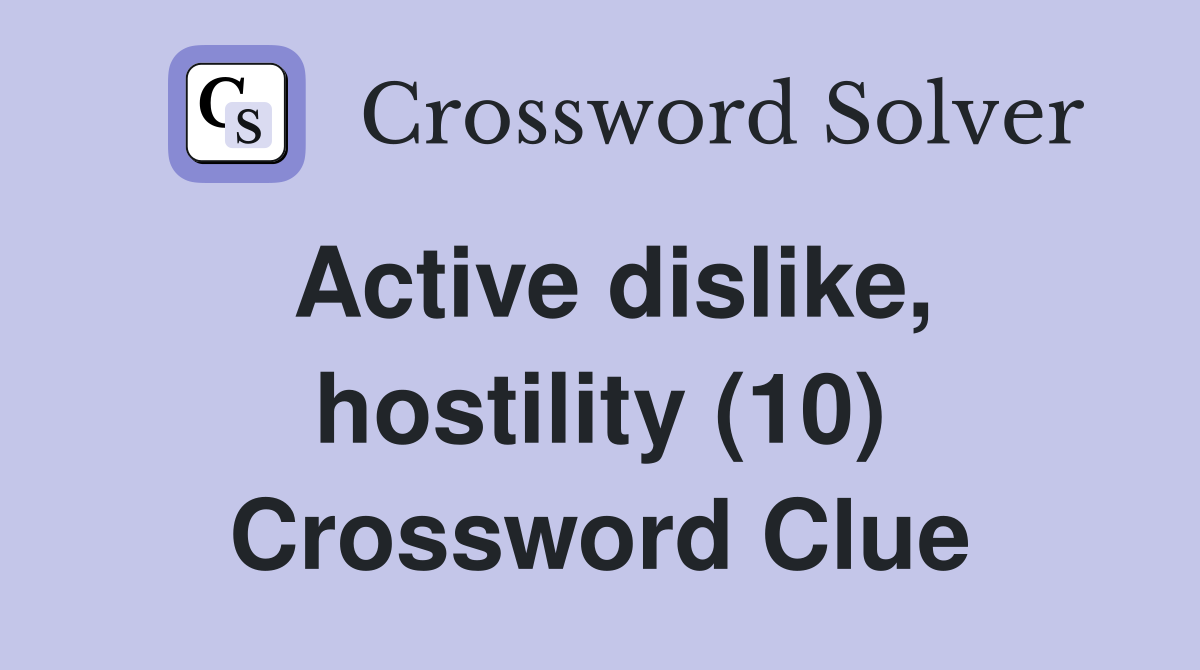 Active dislike hostility (10) Crossword Clue Answers Crossword Solver