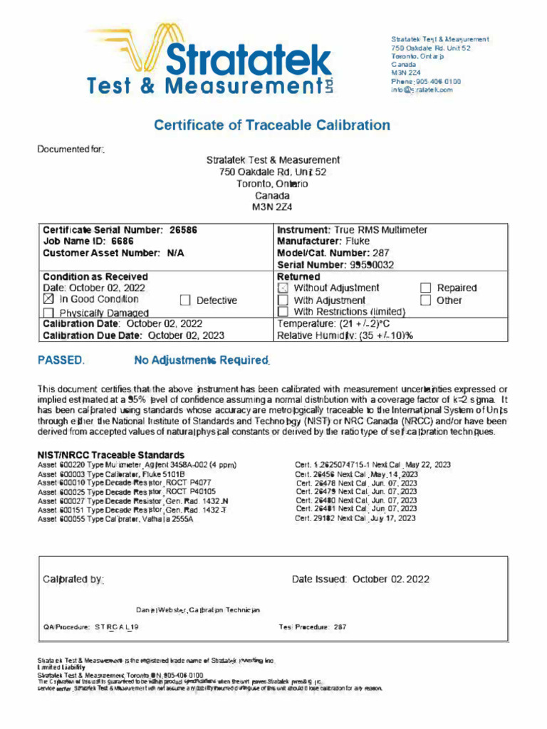 Multimeter Certificate PDF Calibration Science