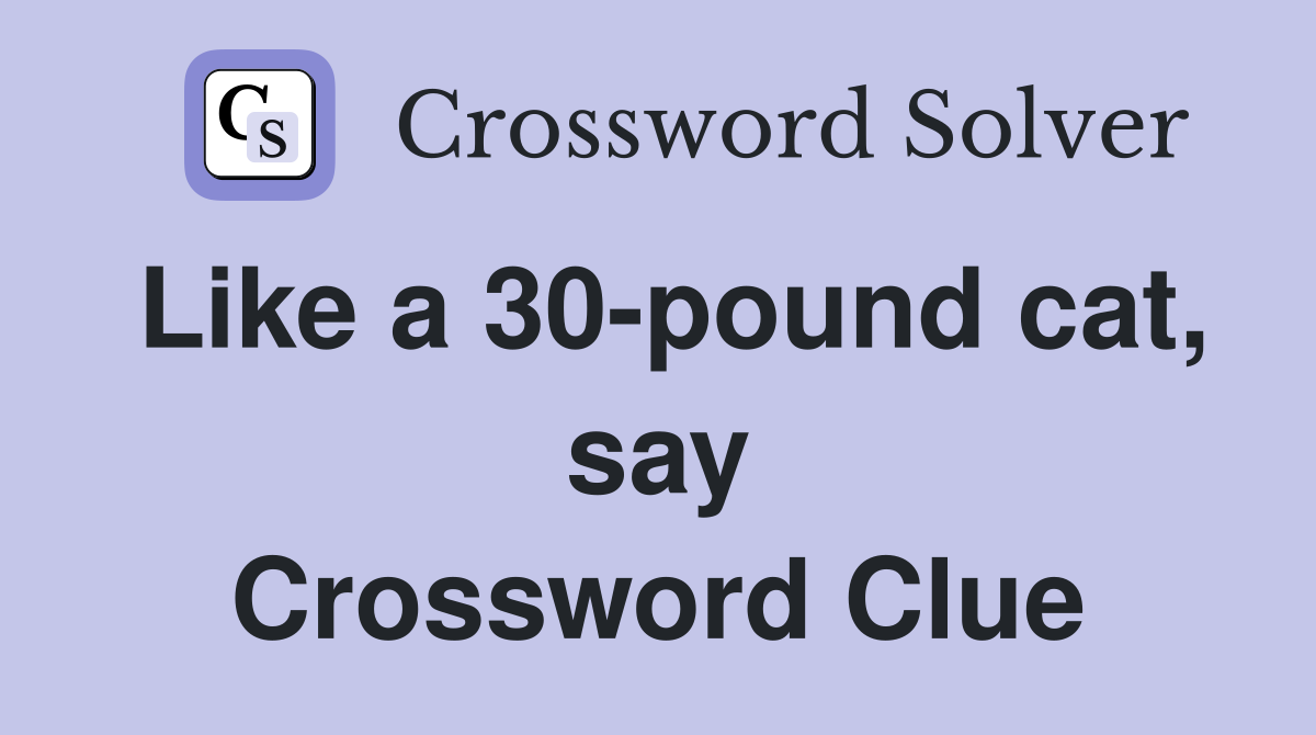 Like a 30 pound cat say Crossword Clue Answers Crossword Solver