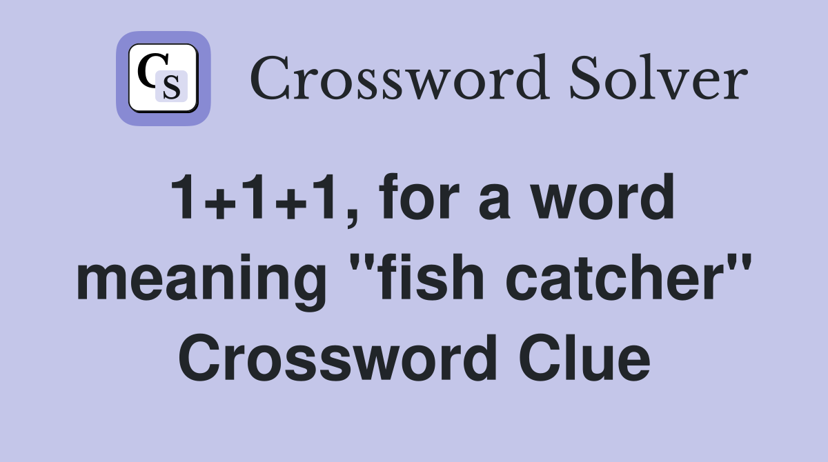 1 1 1 for a word meaning quot fish catcher quot Crossword Clue Answers