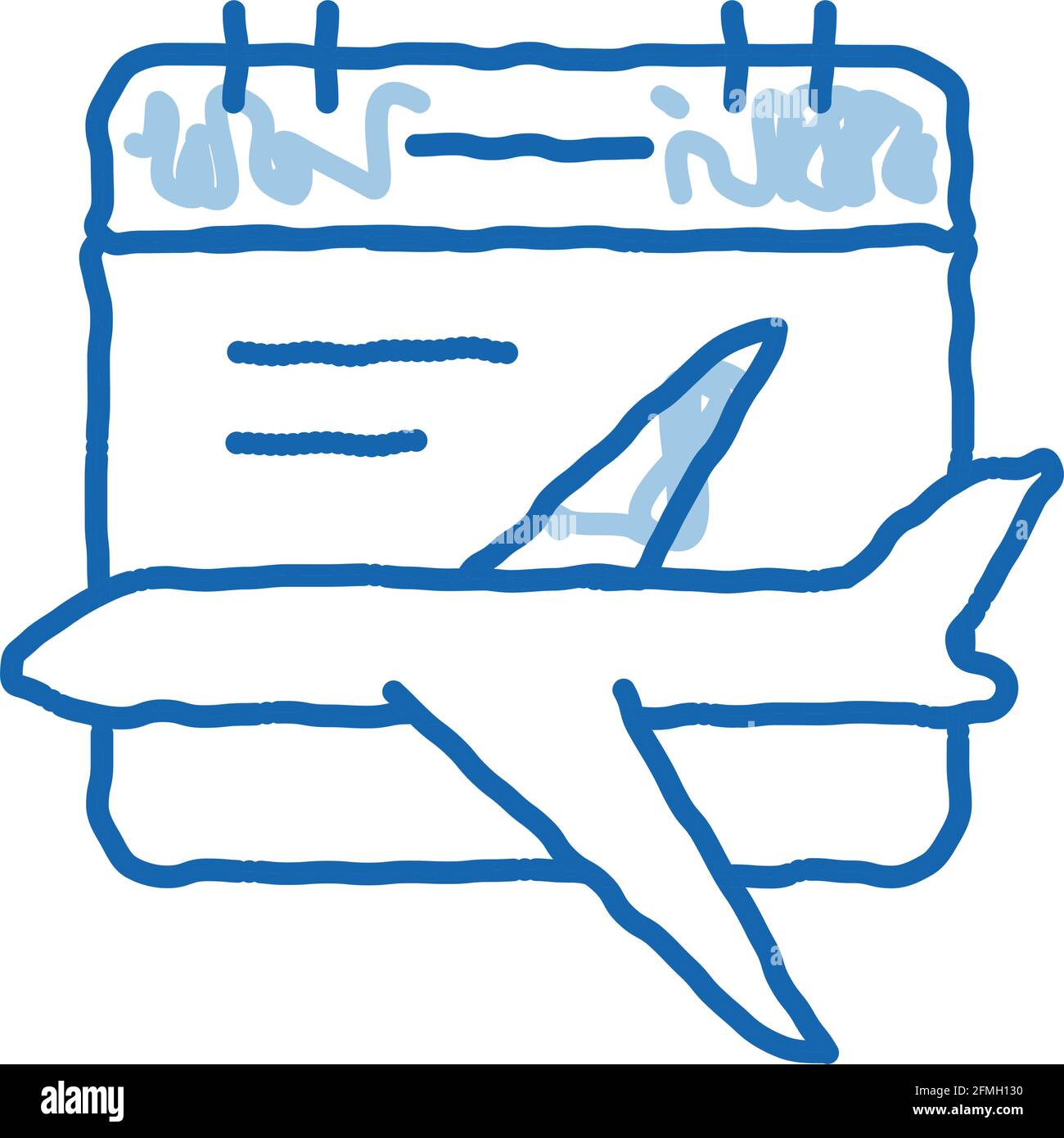 Plane Fly Calendar Date doodle icon hand drawn illustration Stock