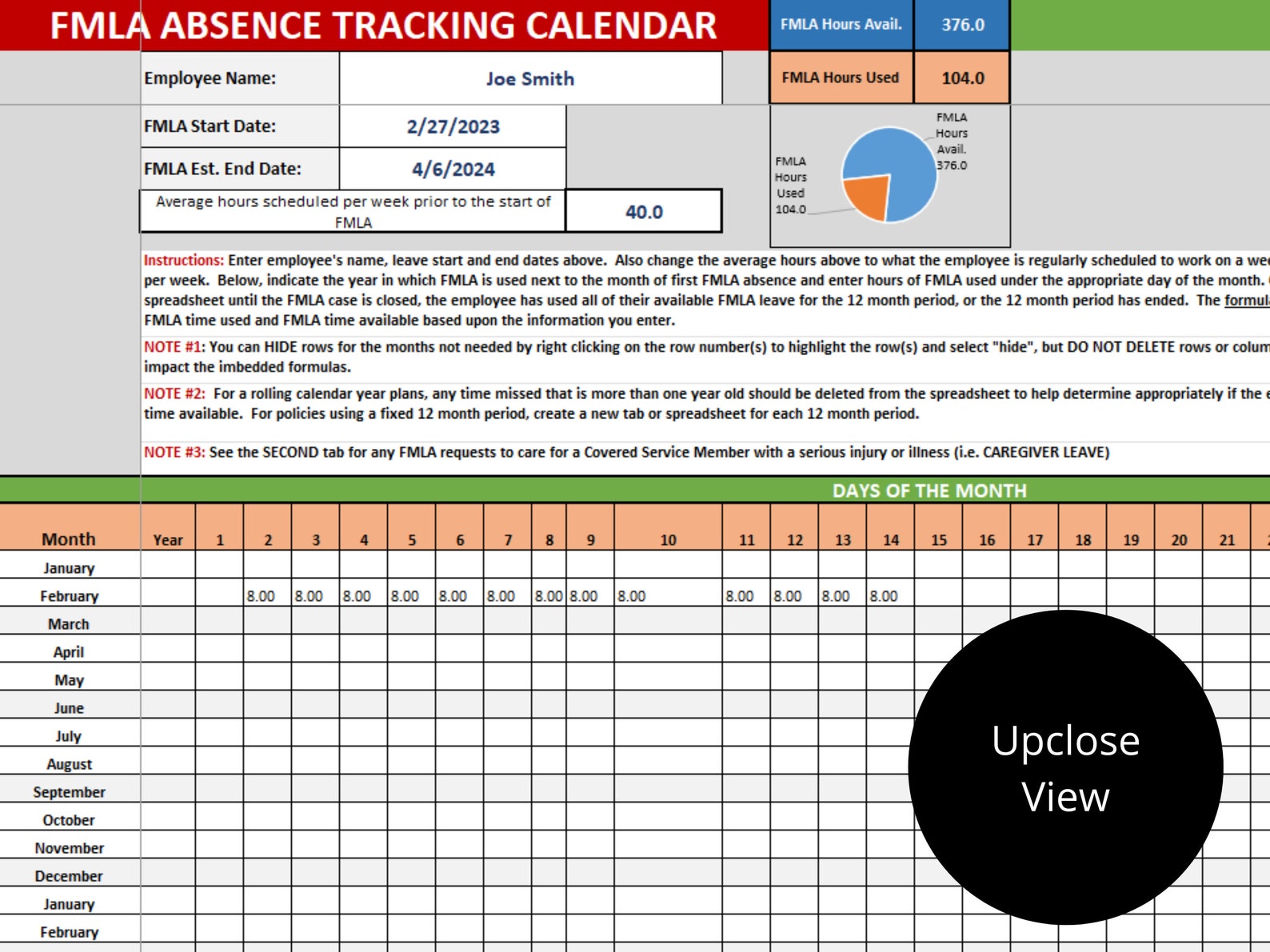 FMLA Absence Calendar and Hours Tracking Spreadsheets excel Etsy