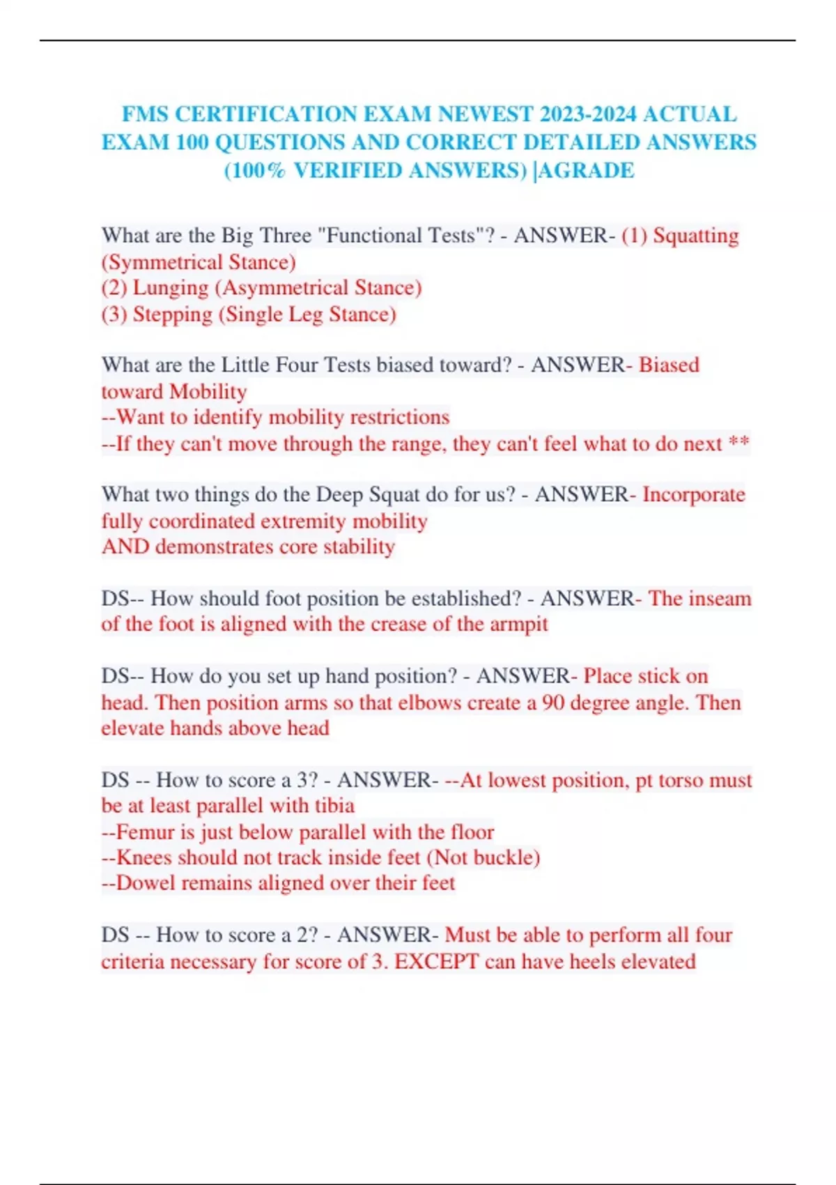 Functional Movement Screen (FMS) Exam 2025 2026 Movement Assessment
