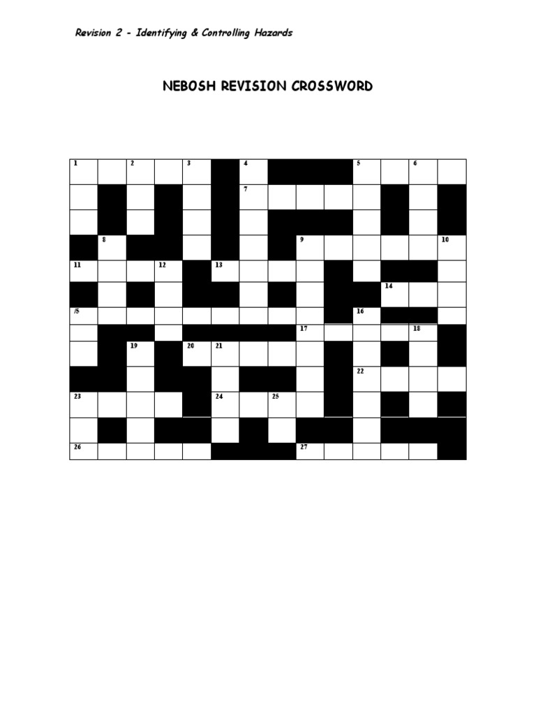 NEBOSH Revision Crossword PDF Hazards Working Conditions
