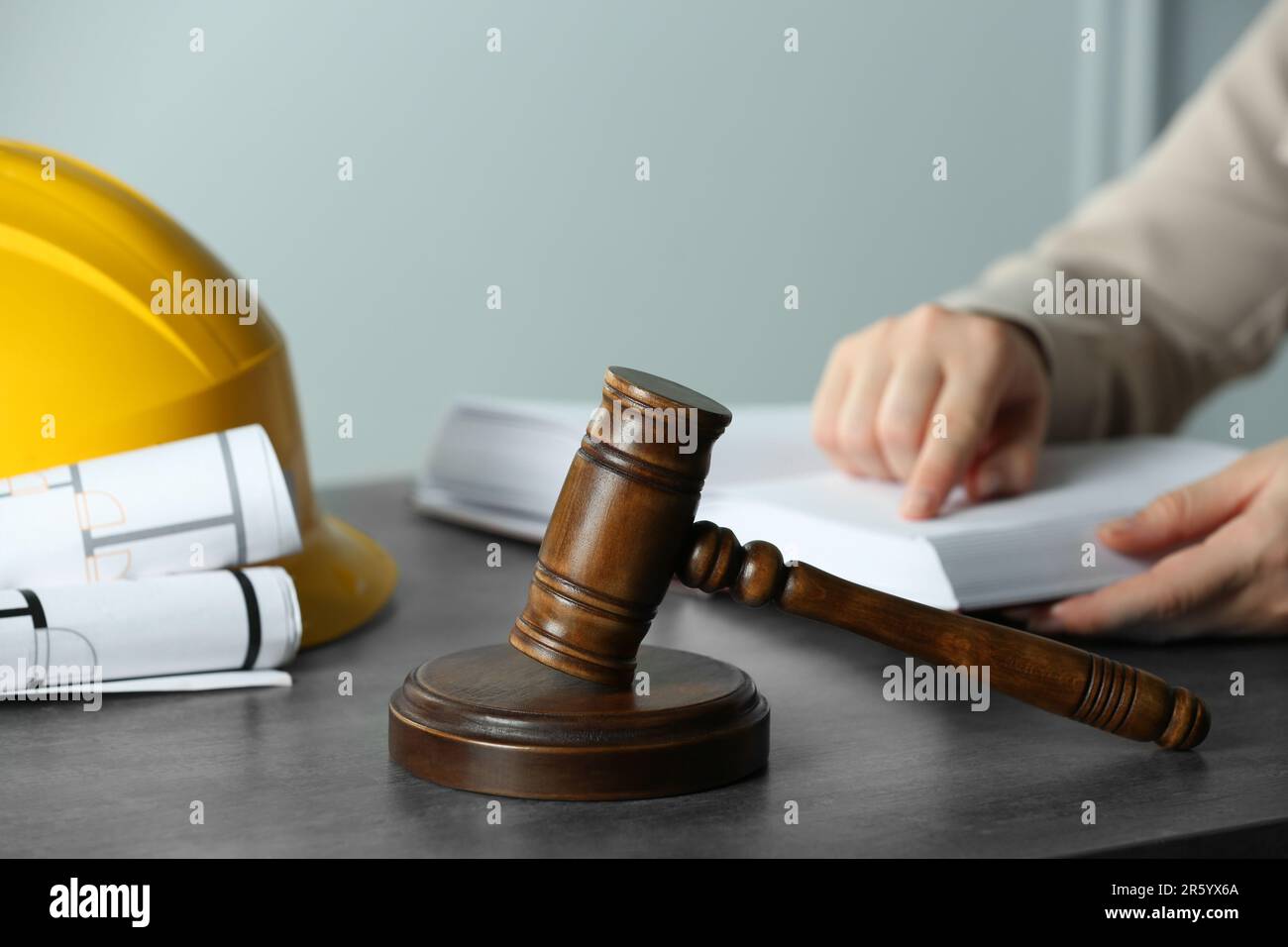 Construction and Land Law Concepts Gavel Hard Hat Measuring Tape and
