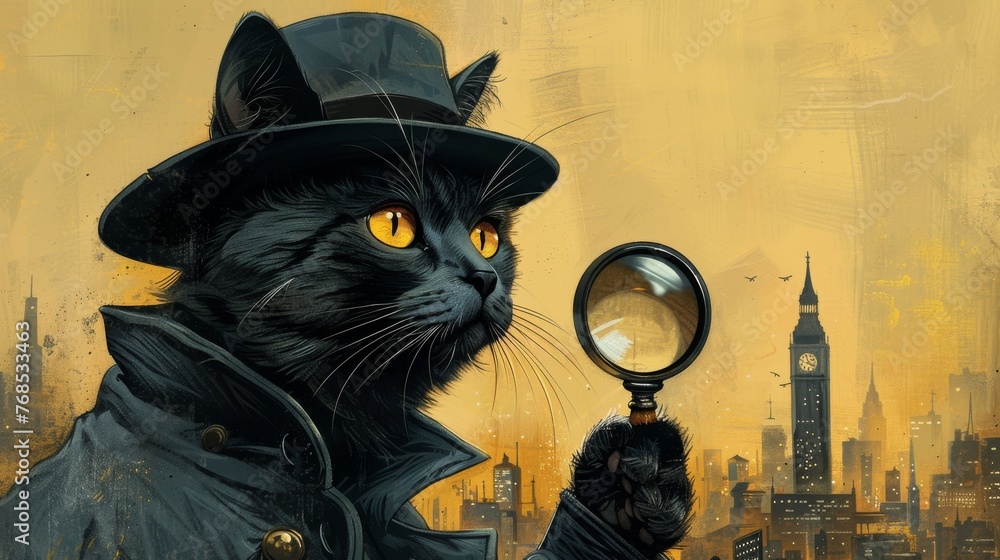 Detective Cat on the Case: Think of a cat with a detective hat and a