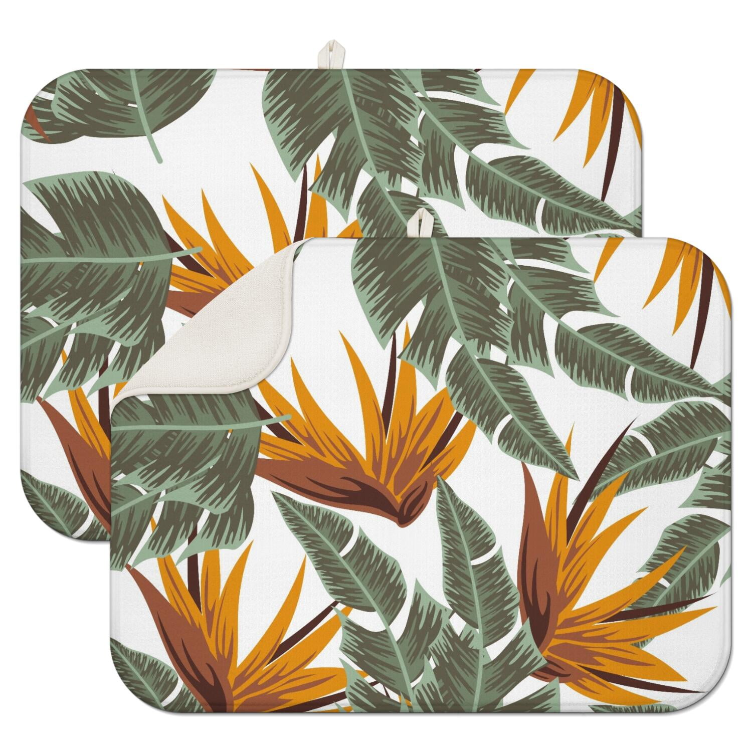 2pcs Jungle Leaves Countertop Drying Pad Absorbent Dish Mat Foldable