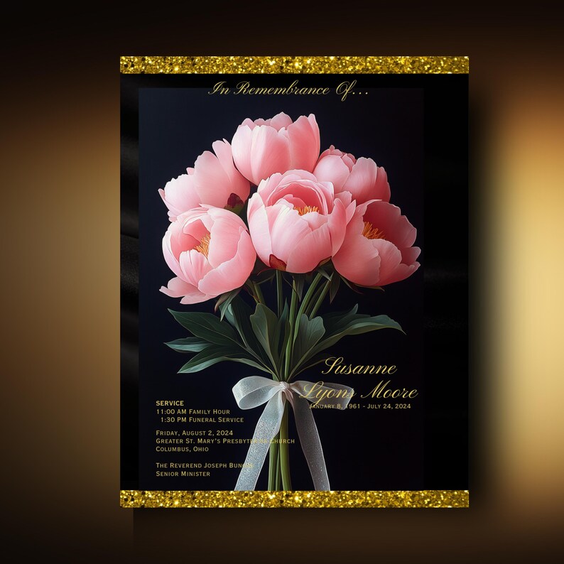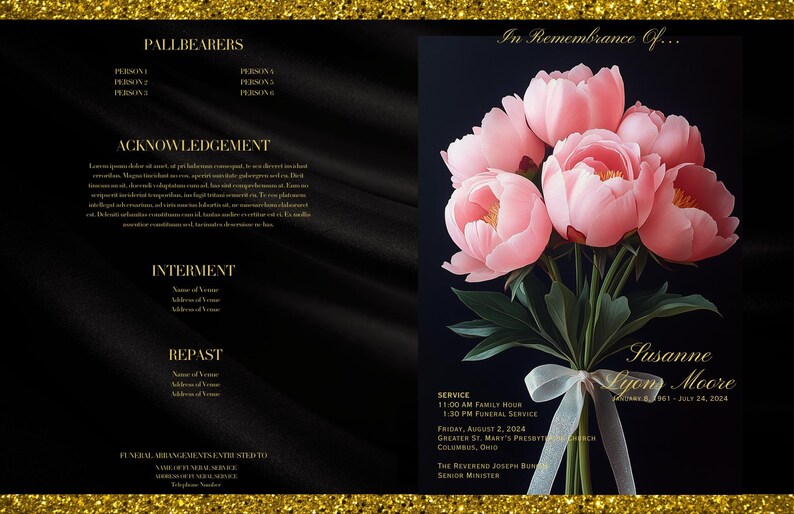 8 5x11 in Folded Funeral Program Template Black Gold Pink Obituary