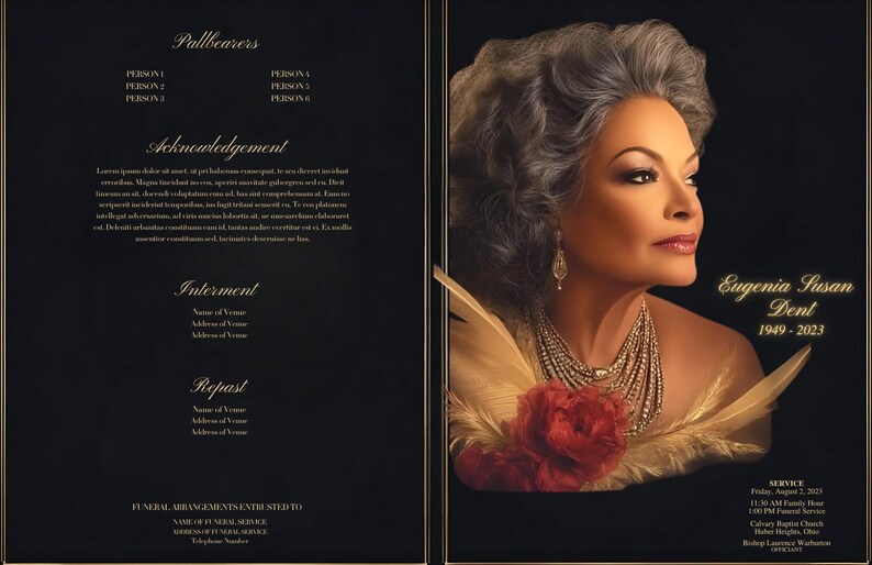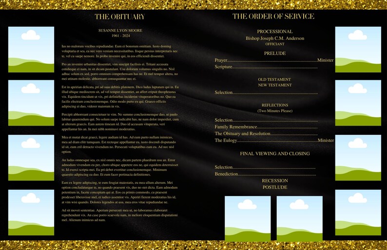 8 5x11 Folded Funeral Program Template Black Gold Obituary Easy to