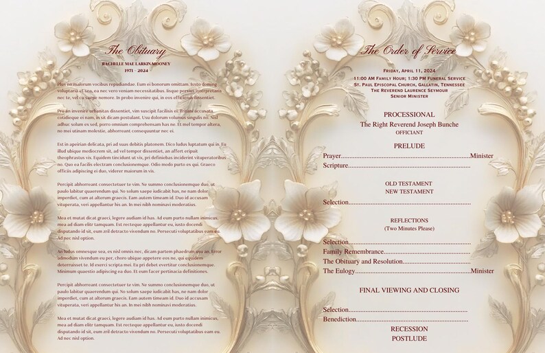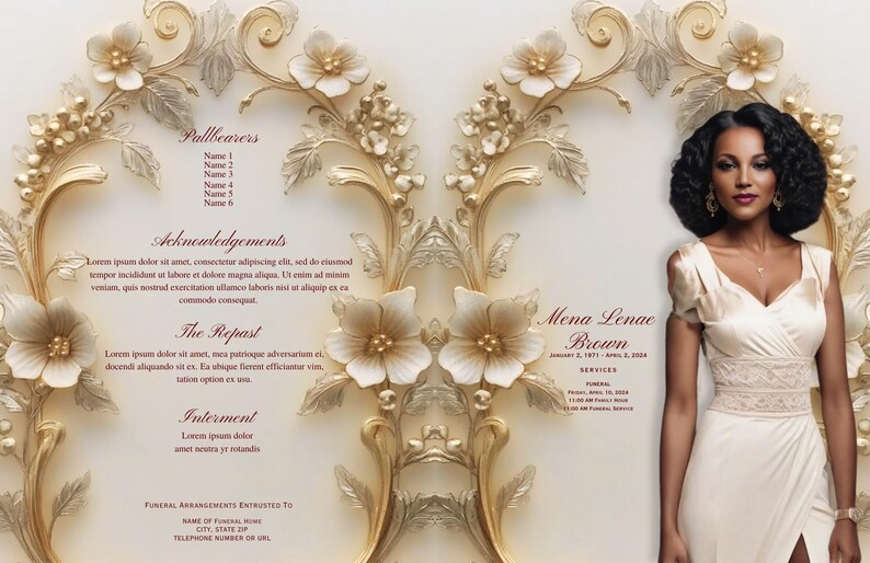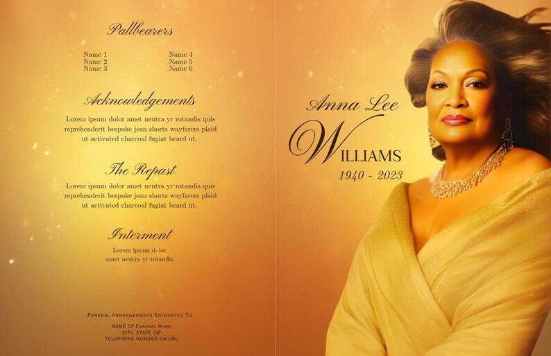 8 5x11 in Folded Funeral Program Template Gold Obituary Easy to Edit
