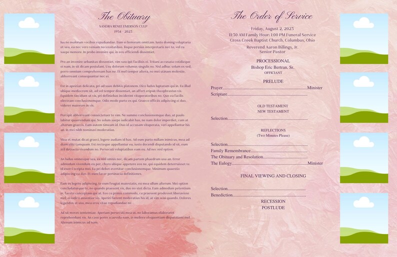 8 5x11 in Folded Funeral Program Template Pink White Obituary Easy