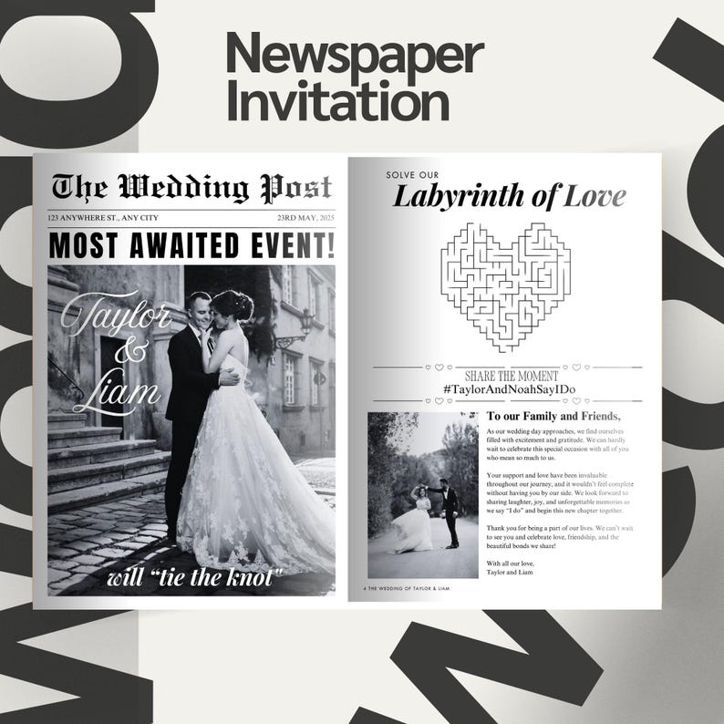 Canva Folded Wedding Newspaper Template Editable Wedding Crossword