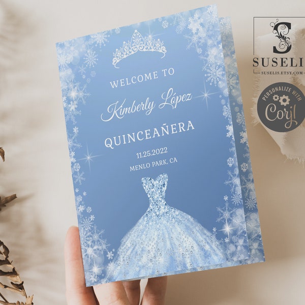EDITABLE Program Template Royal Blue Gold Floral Quinceanera Program