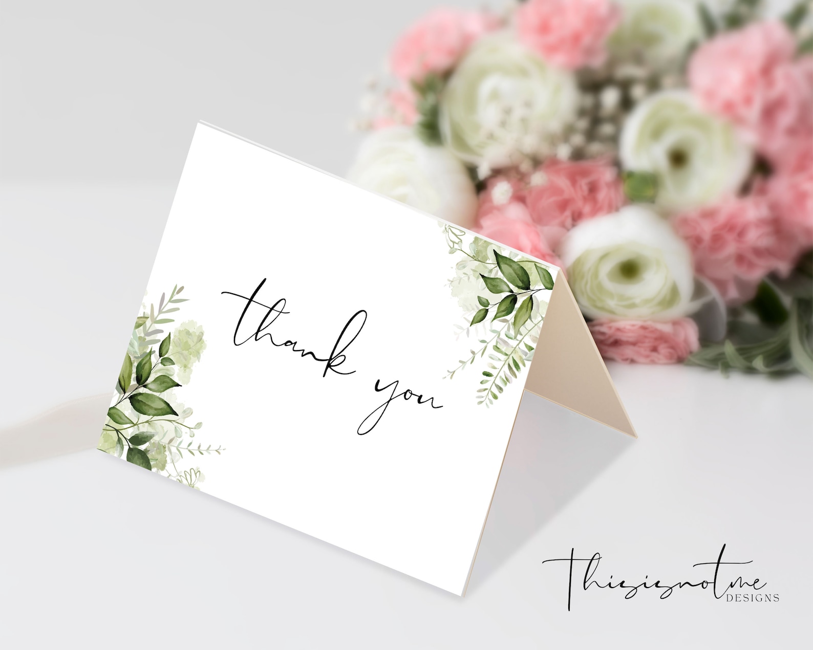 Rustic Greenery Thank You Card Template Chic Boho Wedding Folded Thank