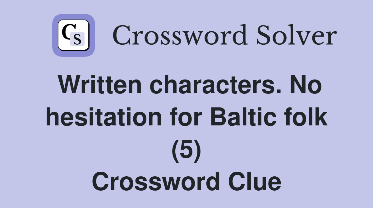 Written characters No hesitation for Baltic folk (5) Crossword Clue