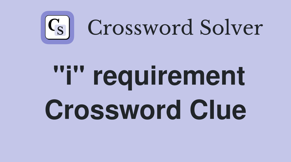 quot i quot requirement Crossword Clue Answers Crossword Solver