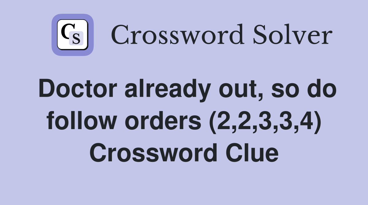 Doctor already out so do follow orders (2 2 3 3 4) Crossword Clue