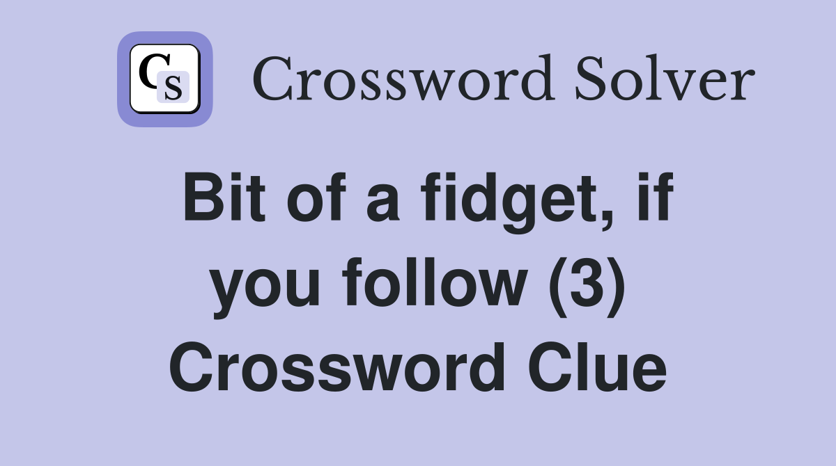 Bit of a fidget if you follow (3) Crossword Clue Answers Crossword