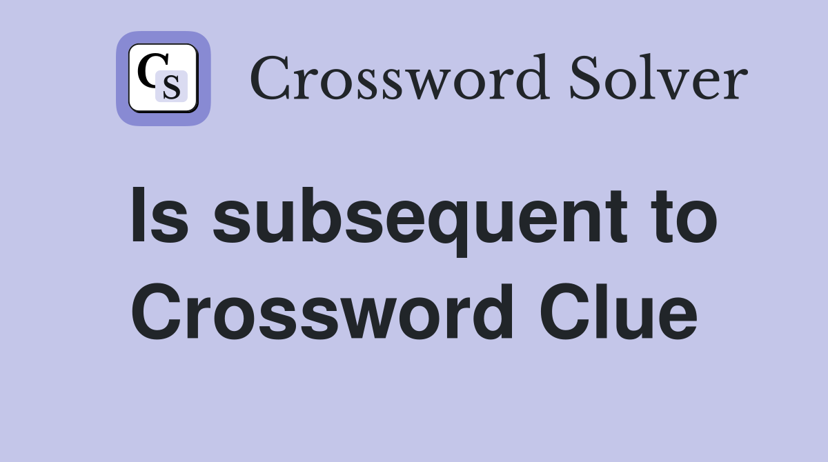 Is subsequent to Crossword Clue Answers Crossword Solver