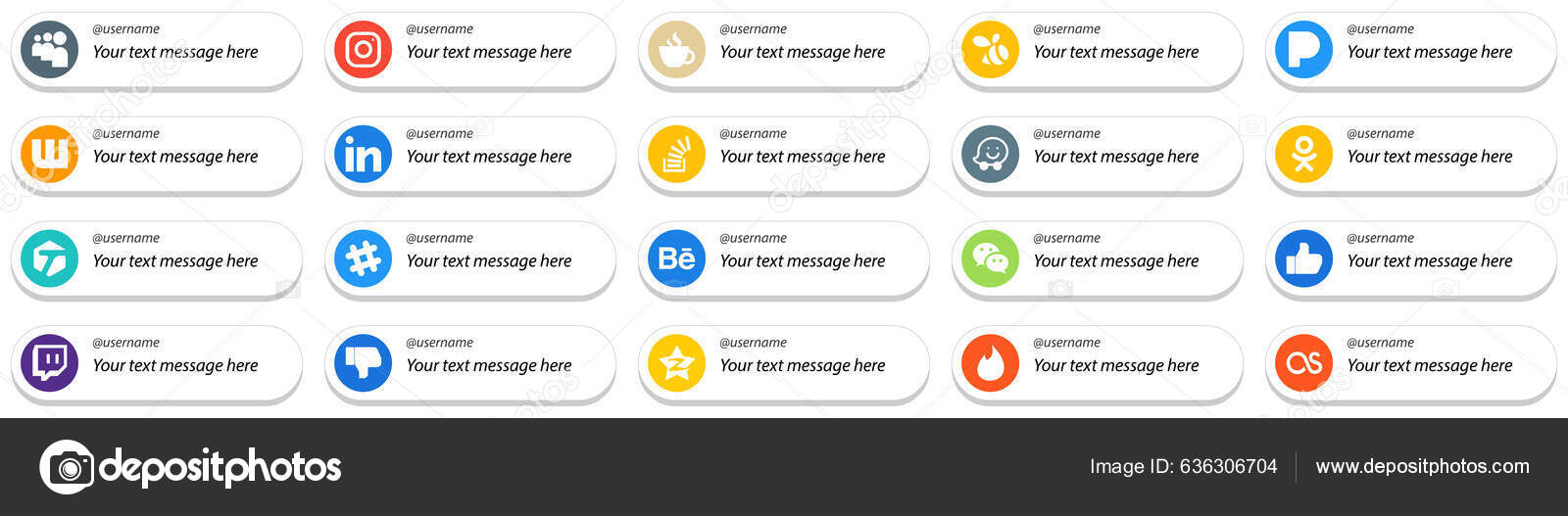 Card Style Follow Social Media Platform Icon Set Custom Message Stock