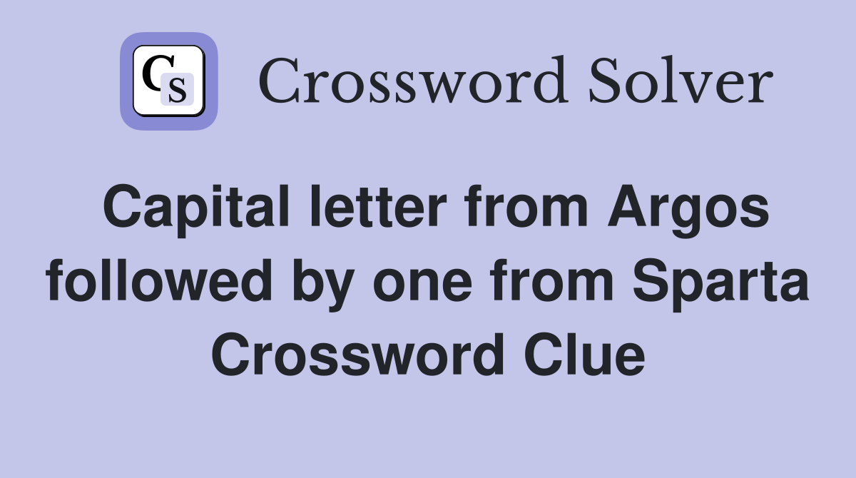 Capital letter from Argos followed by one from Sparta Crossword Clue