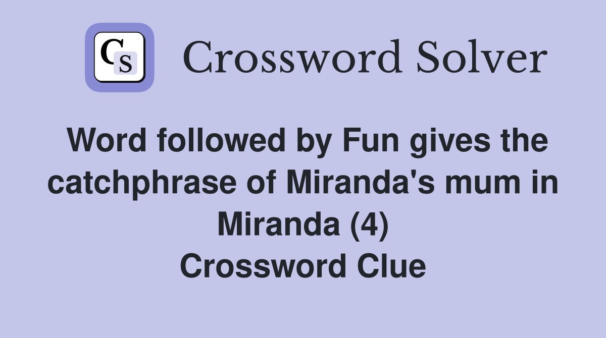Word followed by Fun gives the catchphrase of Miranda #39 s mum in Miranda