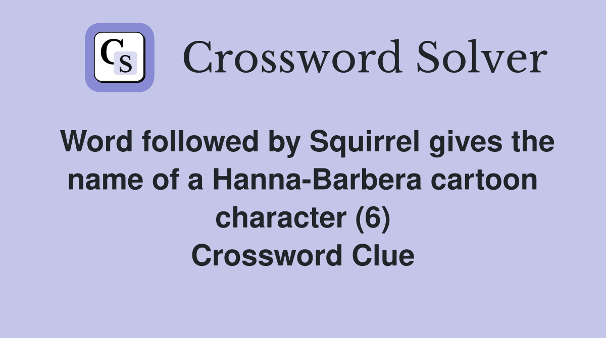 Word followed by Squirrel gives the name of a Hanna Barbera cartoon