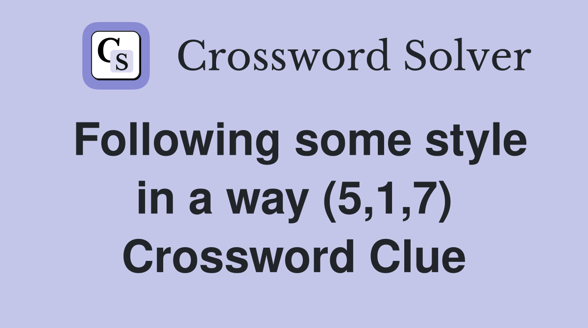 Following some style in a way (5 1 7) Crossword Clue Answers