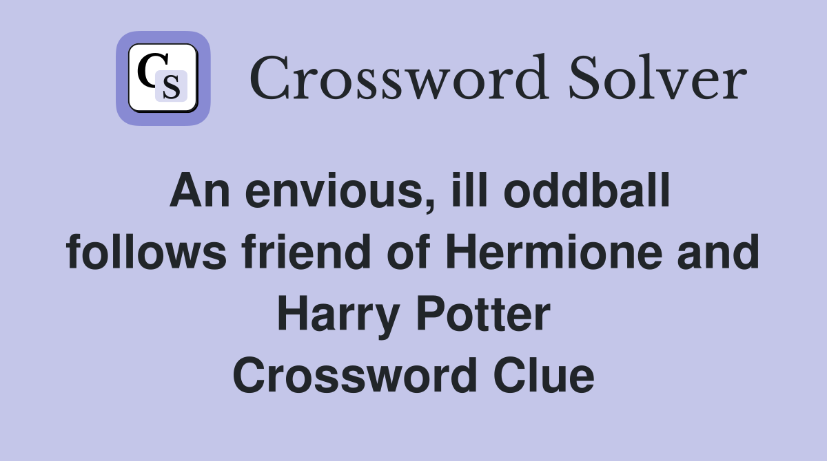 An envious ill oddball follows friend of Hermione and Harry Potter