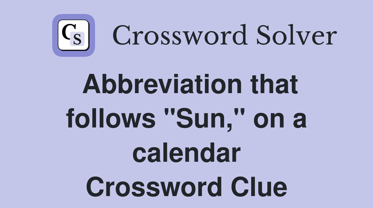 Abbreviation that follows quot Sun quot on a calendar Crossword Clue Answers
