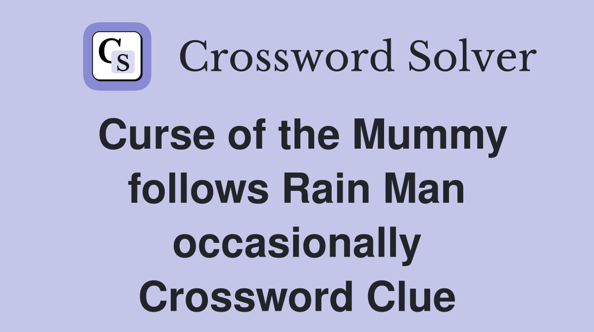 Curse of the Mummy follows Rain Man occasionally Crossword Clue