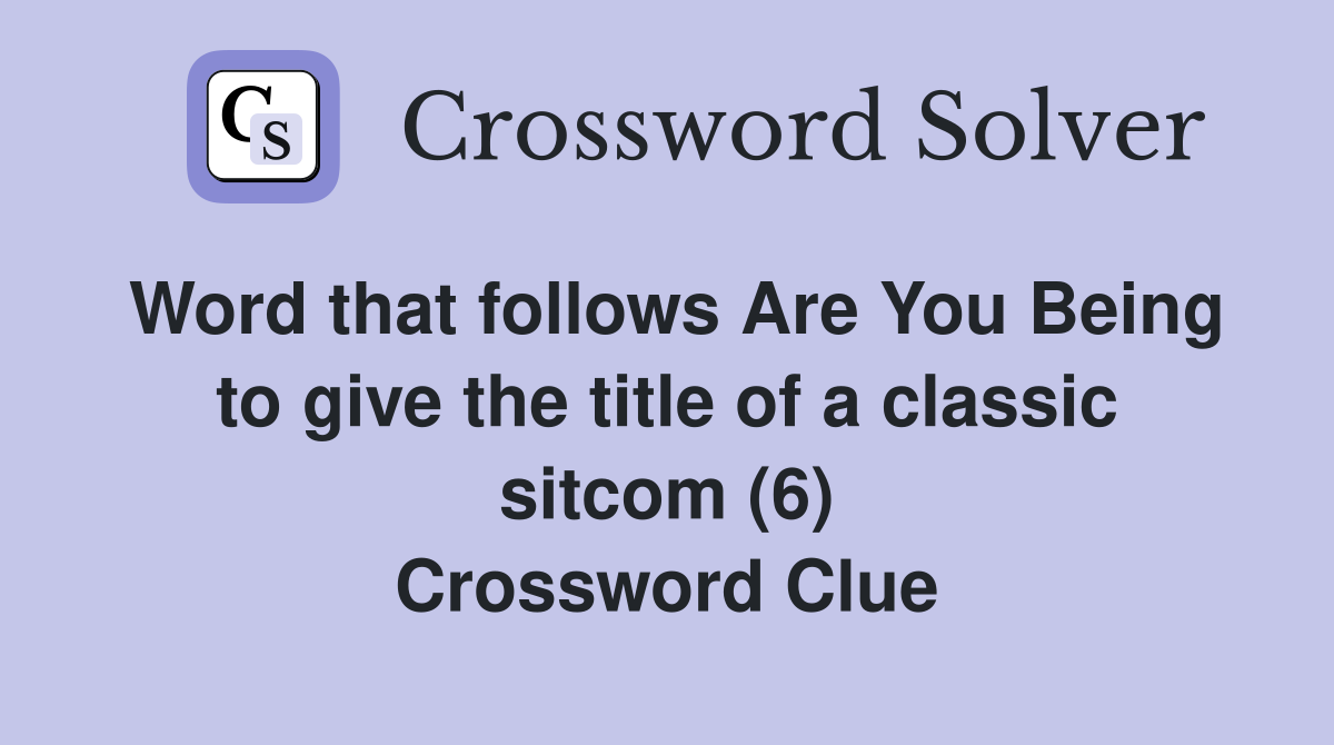 Word that follows Are You Being to give the title of a classic sitcom