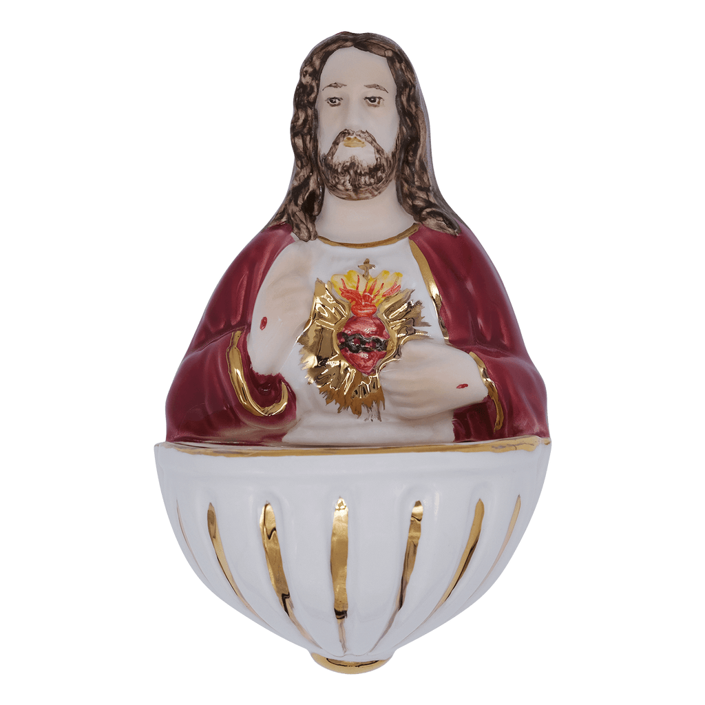 Sacred Heart of Jesus holy water font in ceramic