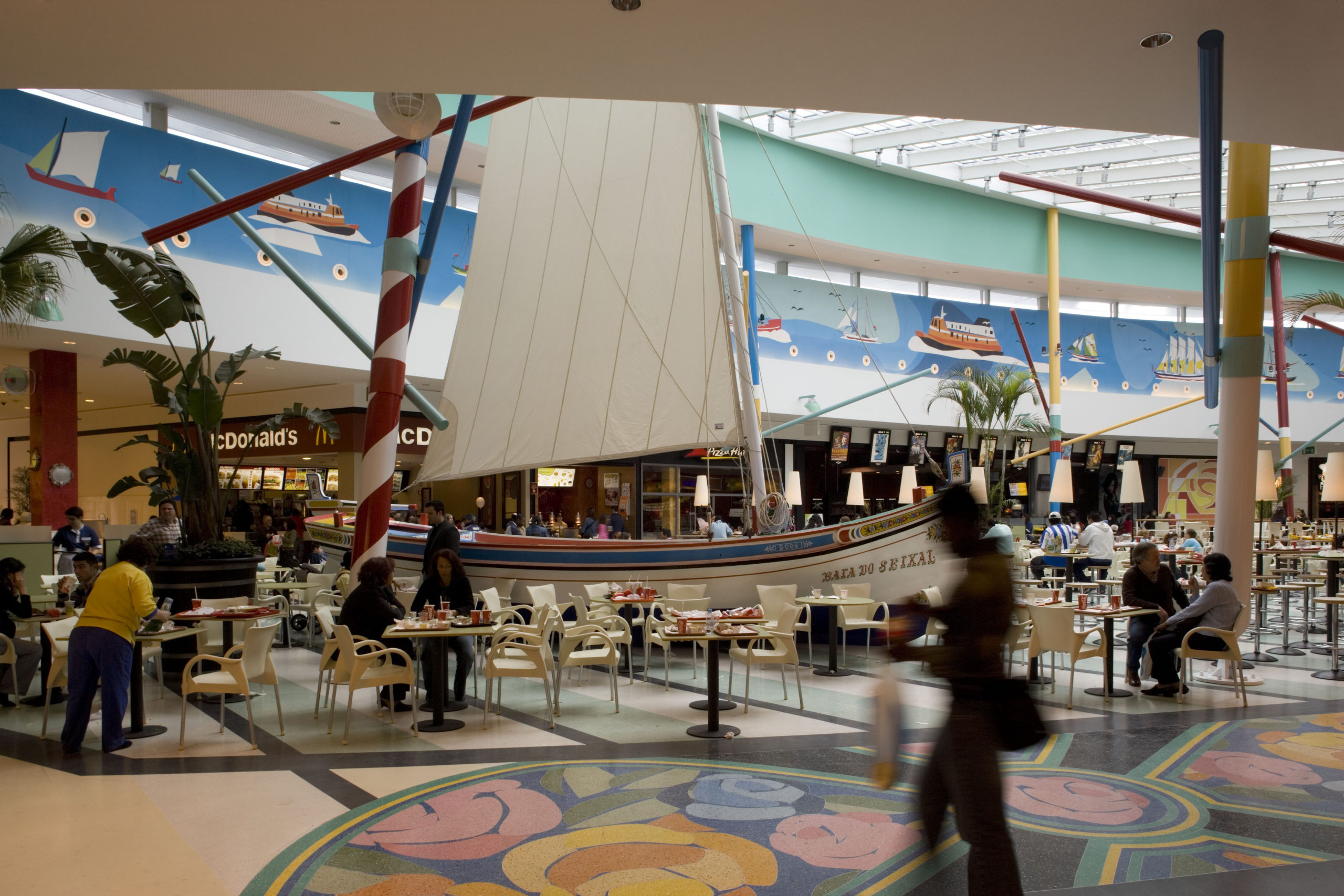 Multistory shopping mall blueprint atriums escalators retail spaces