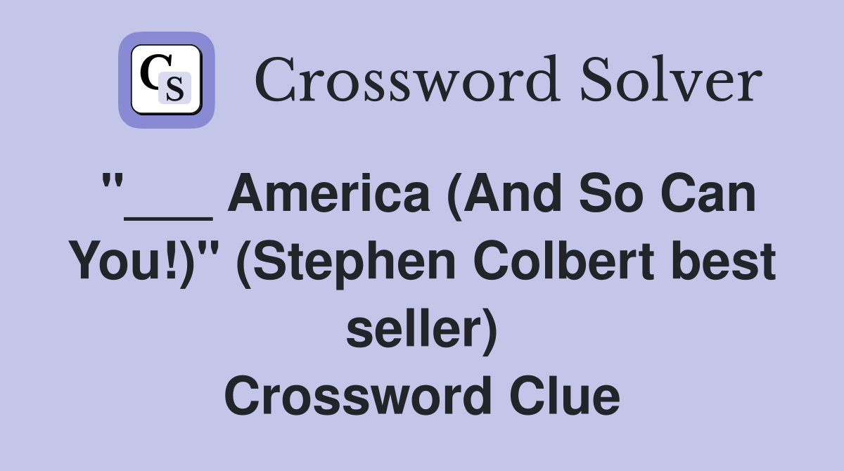 America (And So Can You ) quot (Stephen Colbert best seller) Crossword