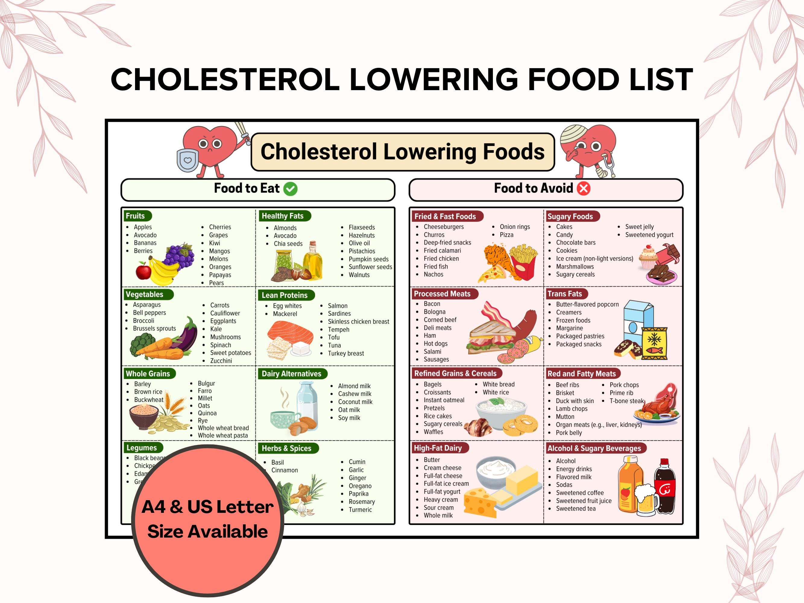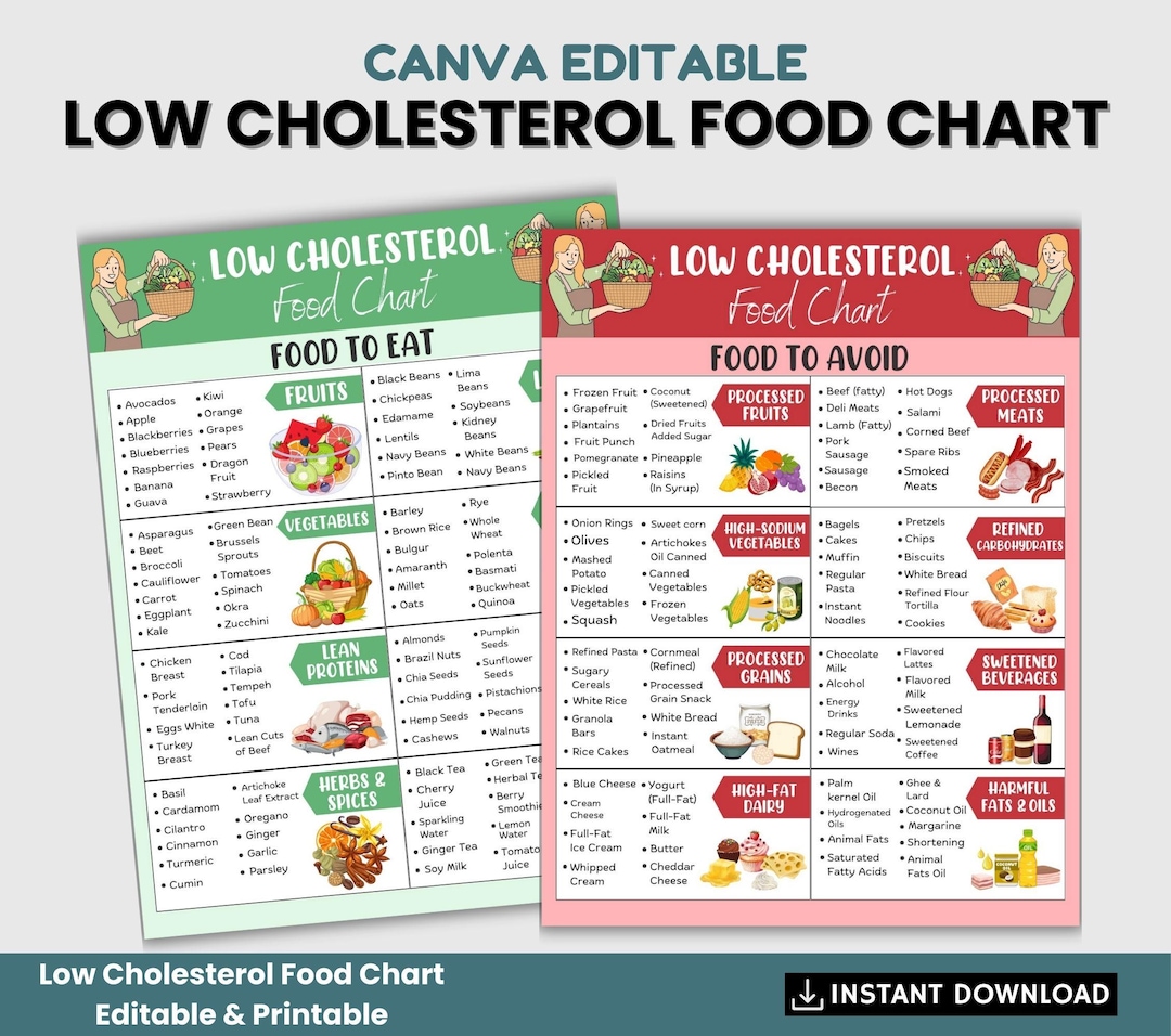 High Cholesterol Food Chart Etsy