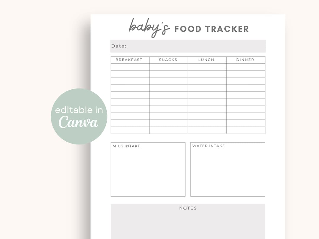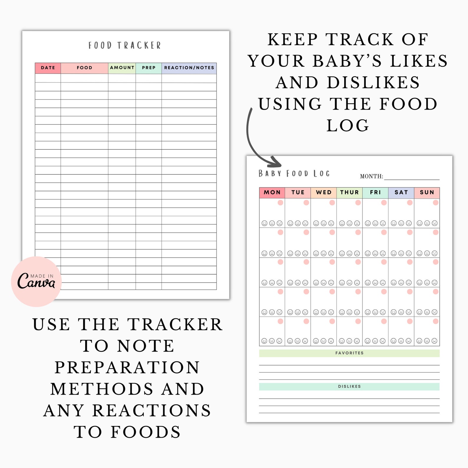 Baby Food Tracker Printable Infant Food Log Toddler Food Log Etsy