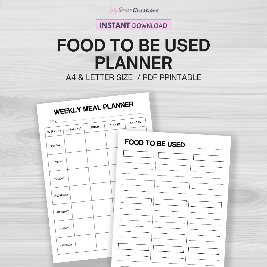 Food to Be Used Printable Planner Food Tracker Meal Planner Reduce