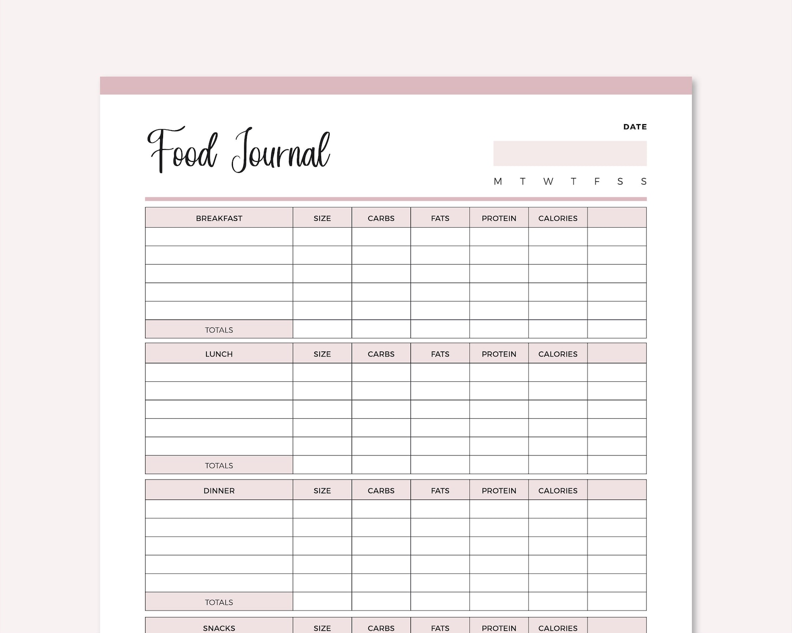 Food Diary Printable Printable Food Tracker Journal Daily Food Log