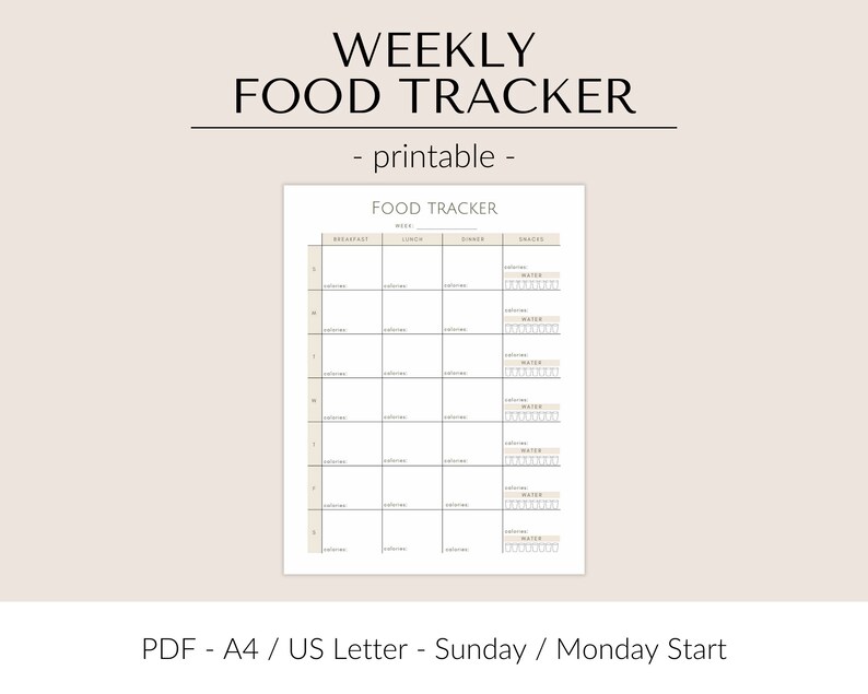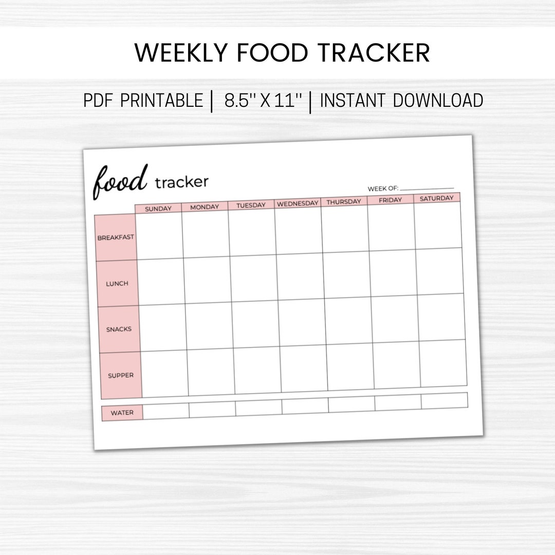 Printable Weekly Food Tracker Minimalist Food Diary for Easy Food