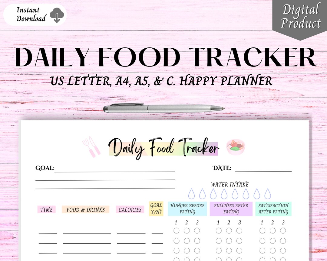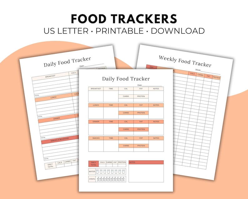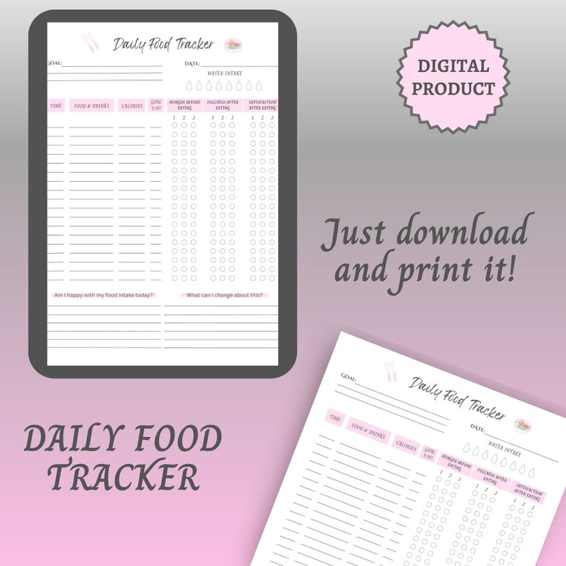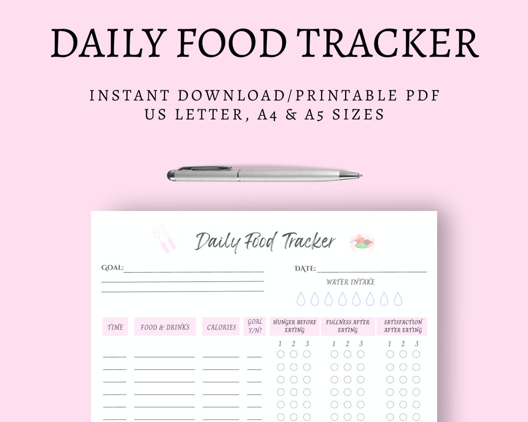 Daily Food Tracker Calorie Tracker Printable PDF DOWNLOAD Etsy
