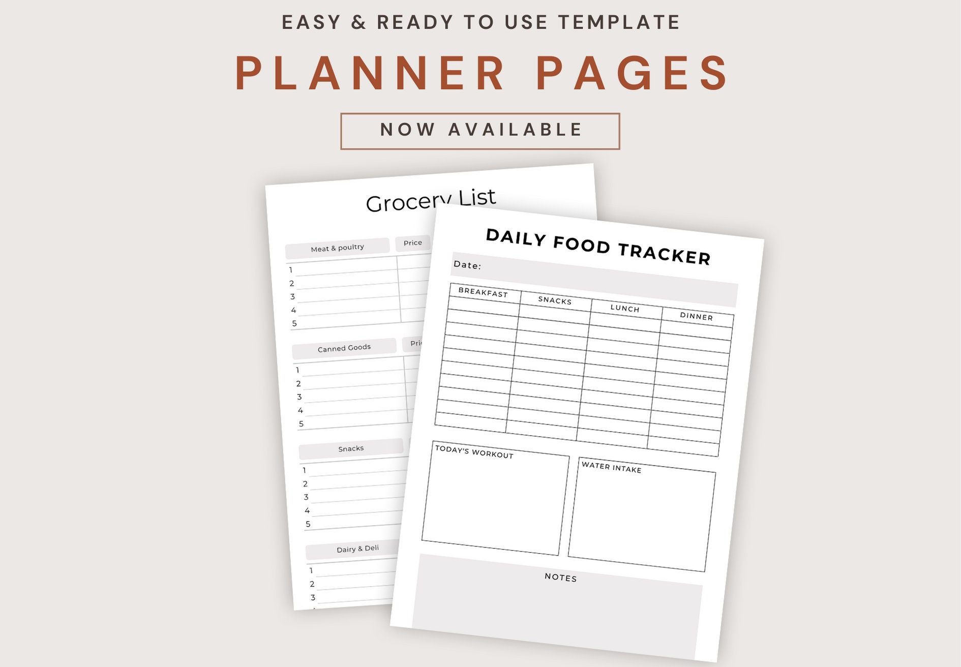 Printable Daily Food Tracker Meal Planner Wellness Tracker Grocery