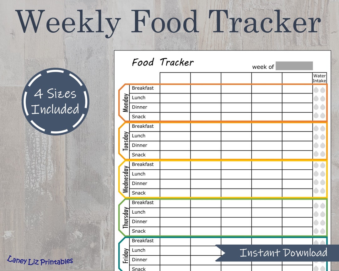 Food Tracker Printable Weekly Food Log Healthy Eating Journal Etsy