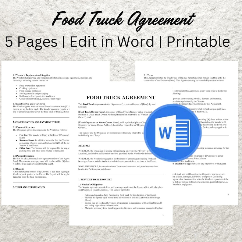 Food Truck Agreement Template Google Docs Word Apple Pages