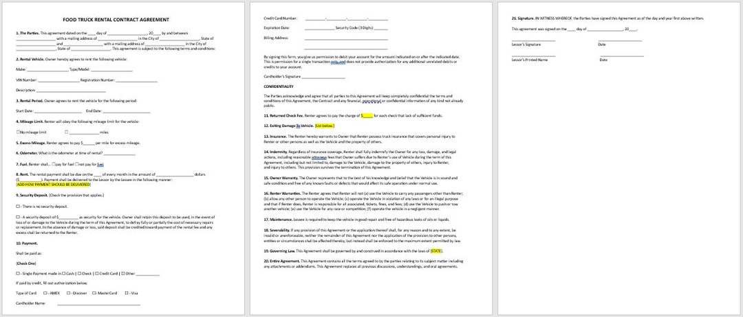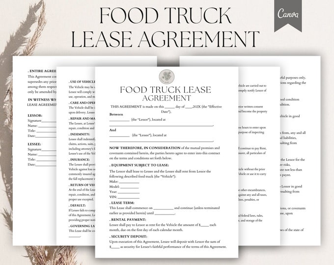 Food Truck Contract Template Etsy