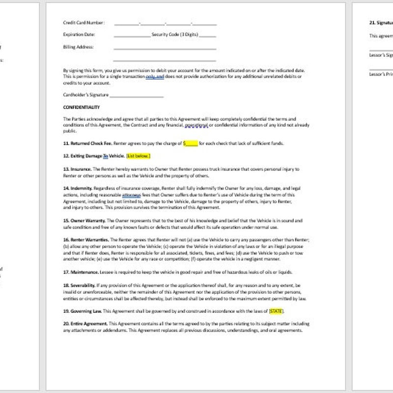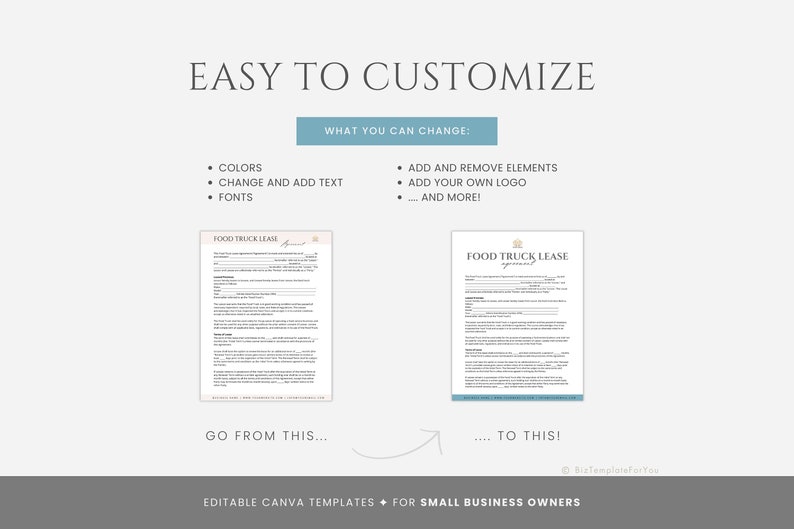 EDITABLE Truck Lease Agreement food Truck Contract commercial Truck