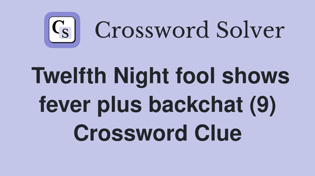 Twelfth Night fool shows fever plus backchat (9) Crossword Clue