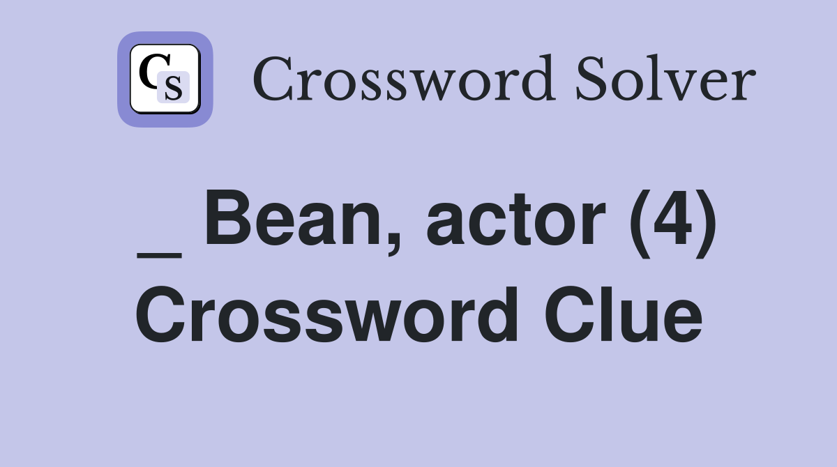 Bean actor (4) Crossword Clue Answers Crossword Solver